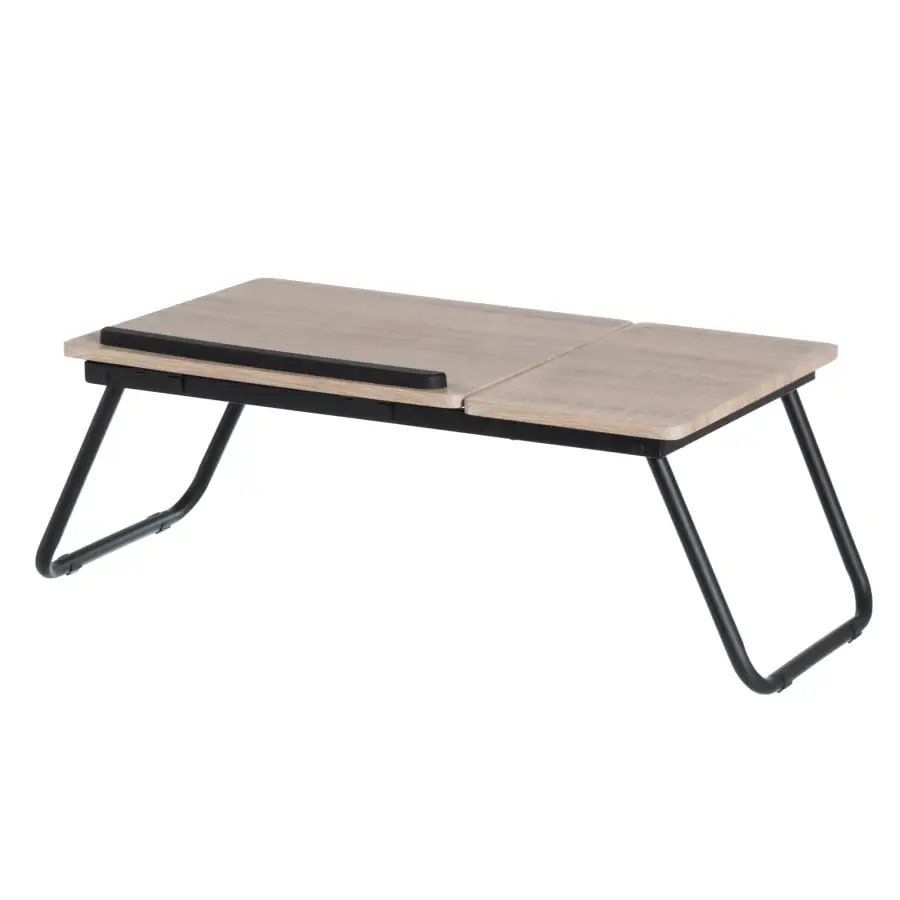 Ergonomic design for many different uses. The practical folding table fits on top of the desk if you want to change the working height and to be able to vary the working position. The table cover can be raised to a vertical position and a tablet or book can be placed in the rack. Thanks to the foldable legs, the table goes into a small space and travels easily with you. Maximum load 3 kg. Table legs 23 cm.