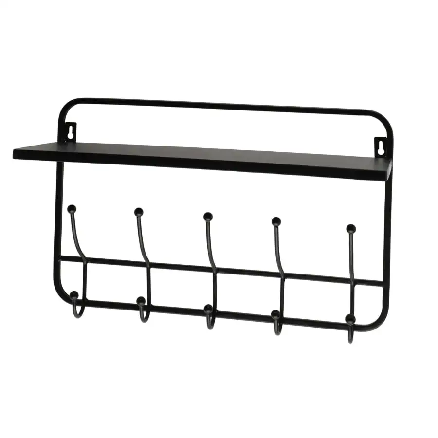 Convenient and stylish metal hanger. Five hooks and a small shelf level. Excellent for hallway and kitchen.