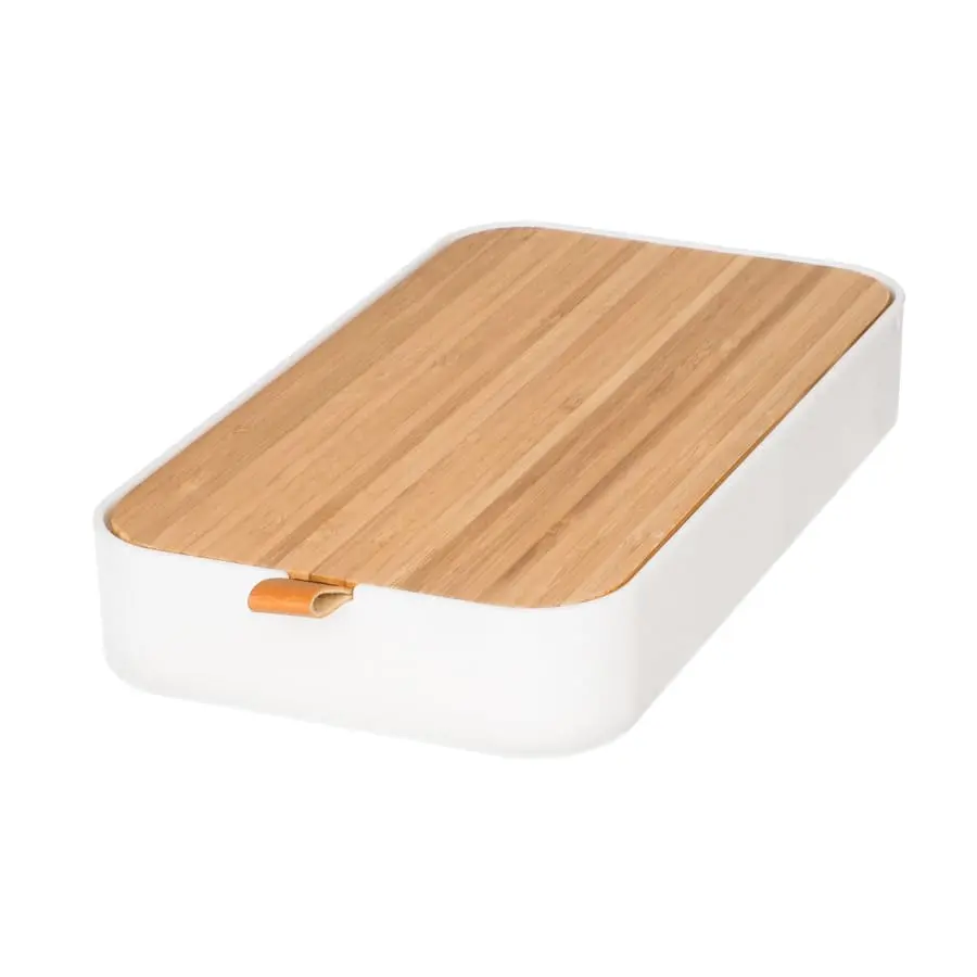 The lid of the box is made of beautiful bamboo and the box is made of durable polystyrene. There is a mirror inside the cover. The box is divided into four compartments. Excellent for storing jewelry and cosmetics.