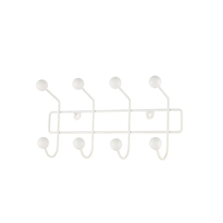 The frame of the beautiful wall hanger is painted steel and the ball knobs are porcelain.