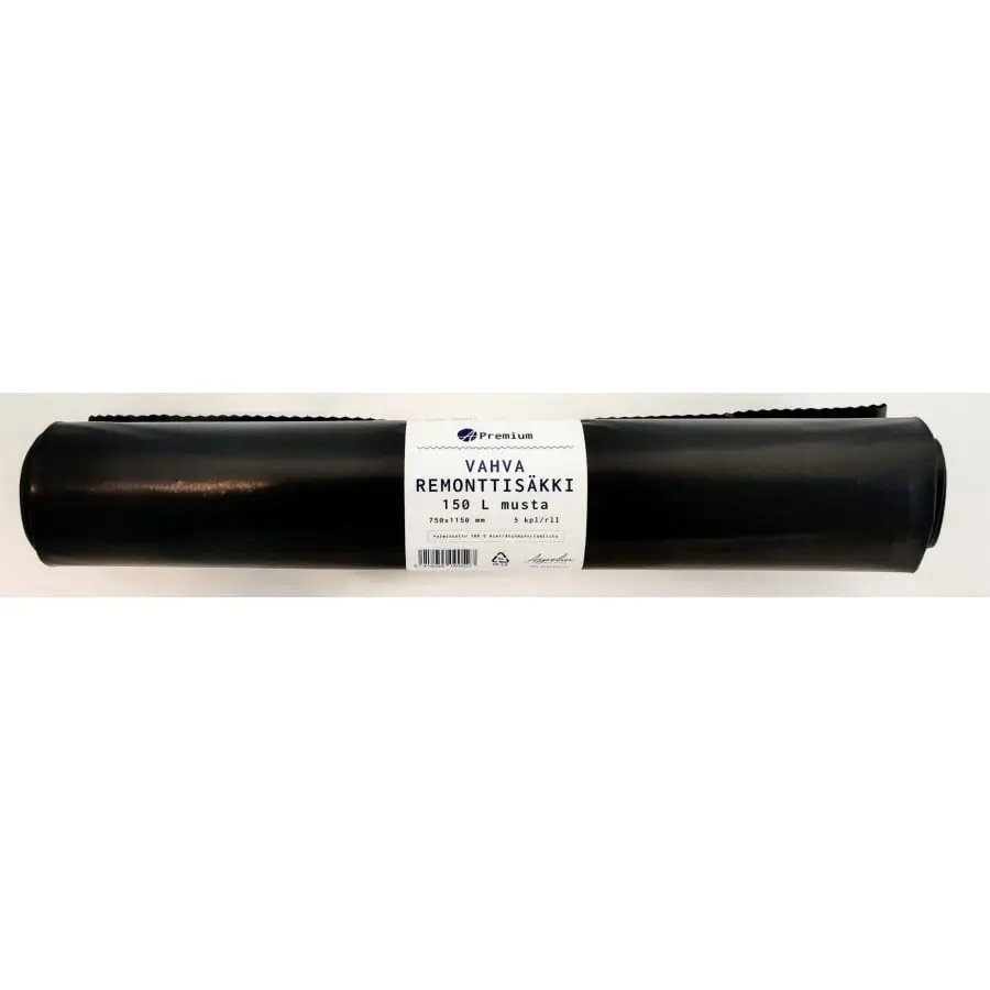 A. Premium black strong repair bag 150 liters. Size 75×115 cm. Strength 90 my.