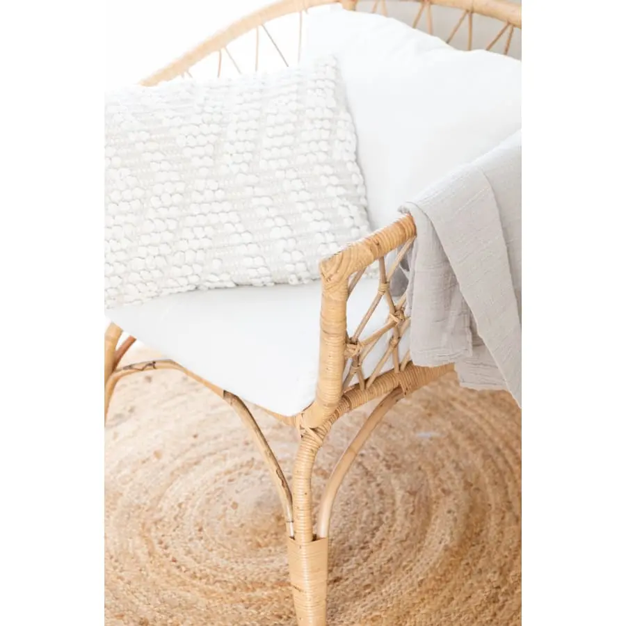 Rattan is an ecological natural material and its characteristics include color variations and darker areas. Variations in color, unevenness and traces of handwork make each rattan product unique. Suitable outdoors only for covered balconies and terraces. Make sure that the rattan furniture does not get directly into the scorching sun. Water and sun cause cracking, graying of the surface and decay in rattan. It is recommended to store in a dry indoor space for the winter.