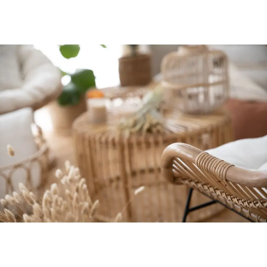 Rattan is an ecological natural material and its characteristics include color variations and darker areas. Variations in color, unevenness and traces of handwork make each rattan product unique. Suitable outdoors only for covered balconies and terraces. Make sure that the rattan furniture does not get directly into the scorching sun. Water and sun cause cracking, graying of the surface and decay in rattan. For the winter, it is recommended to store in a dry interior.