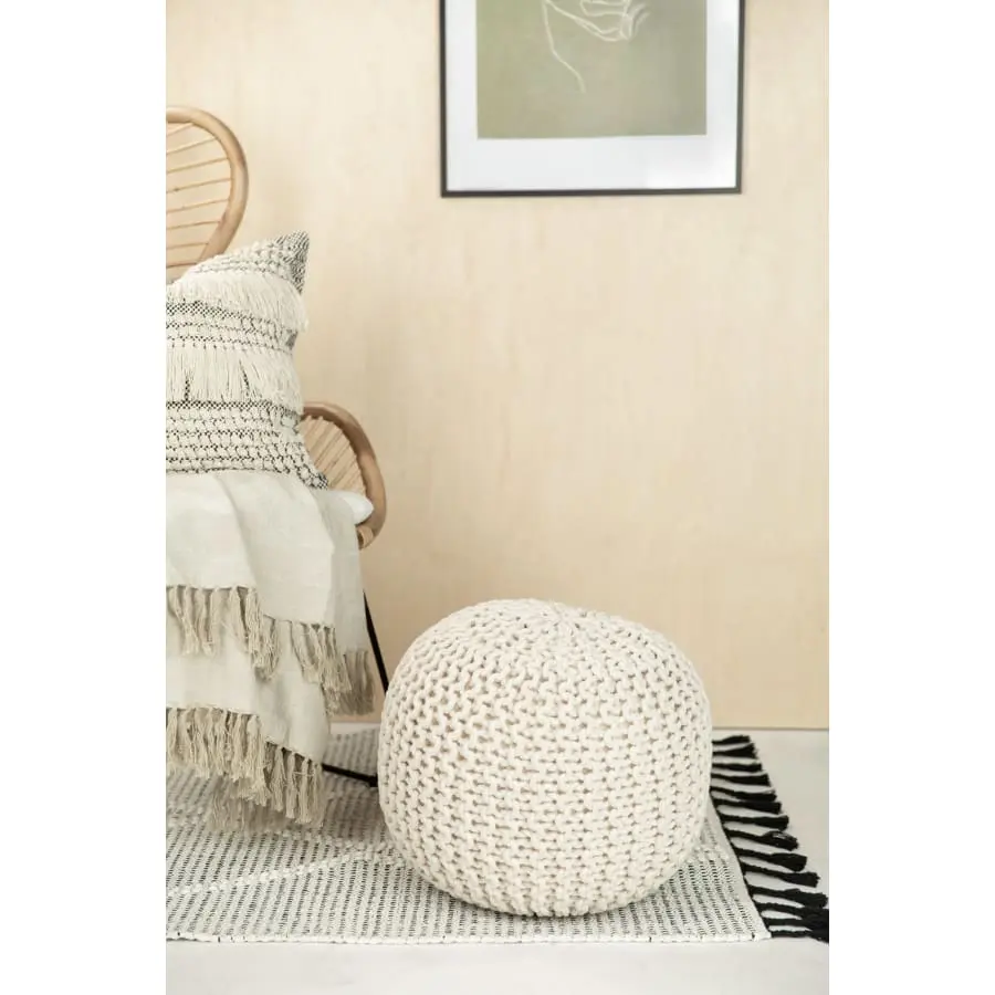 AINA Silmu is a hand-crocheted cotton footstool. It is suitable as an additional seat or under the legs for a sofa corner. The earthy color is suitable for many spaces