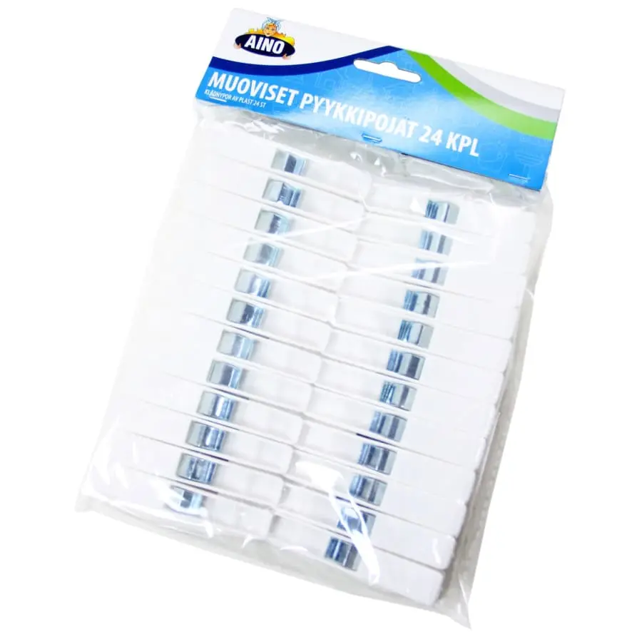 Aino Clothespins are made of plastic. The design is especially suitable for hanging sheets. The pack contains 24 pieces of clothespins.