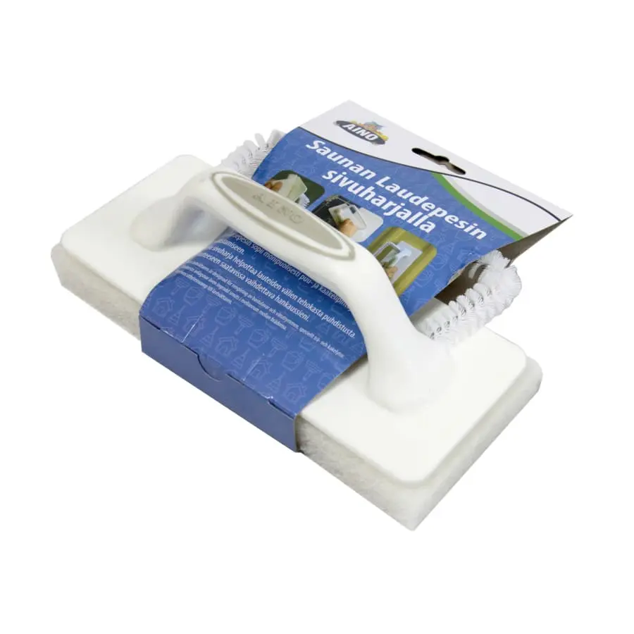 The Aino Sauna Brush is versatile brush designed for the surfaces in a sauna including wood and tile. Comes with two types of brushes attached for a wider variety of uses. After use, rinse the product with water and let it dry in order to keep it in great condition and make it last longer.
