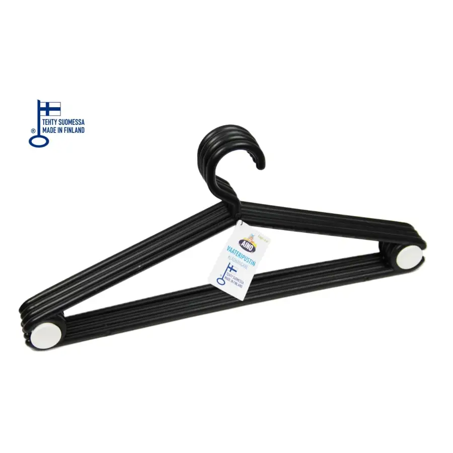 Aino is a traditional plastic hanger for storing light clothing. The thin hanger fits even in a small storage space. One pack contains four hangers. Unit size: 40x19x1 cm. Made of 100 % recycled plastic.