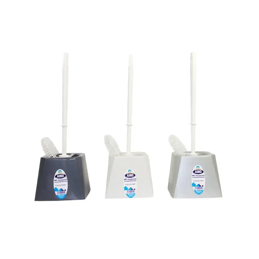 This is a traditional toilet brush set. Includes a brush with nylon bristles and a place for storage. The brush has a special side brush. Length: 38 cm