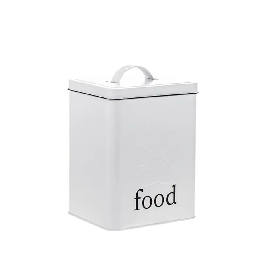 White pet food jar with metal lid. Size 18×15.5x23cm.