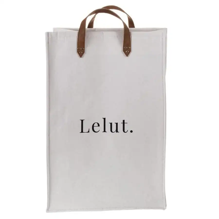 Big white bag with black text ”Toys.”, faux leather handles. Size 40x26x60cm