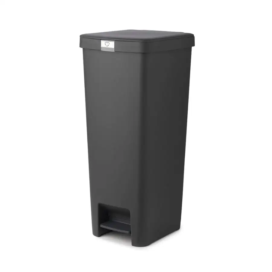 StepUp mahtuu tilaa säästäen kätevästi seinää vasten. Helppo poljinmekanismi avaus, kansi sulkeutuu hiljaisesti ja voit nostaa kannen ylös niin se pysyy auki kun vaihdat roskapussin. Sisällä pohjan lokerossa mahtuu hyvin säilyttämään roskapussirullan.