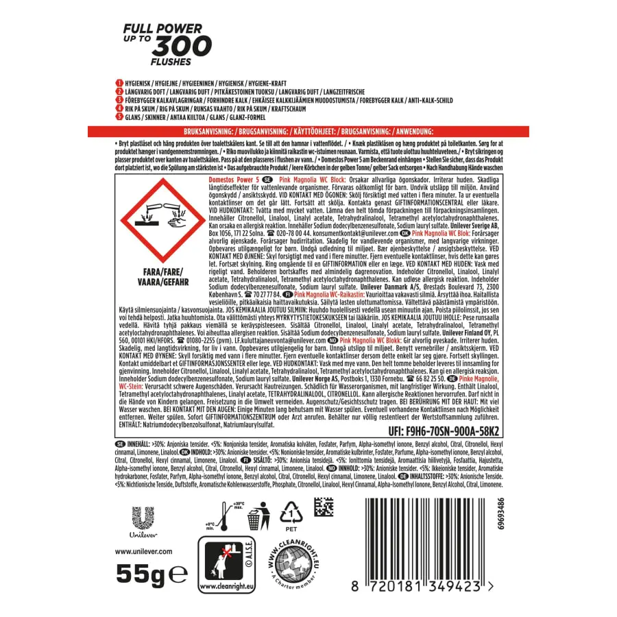Vaara- ja turvalausekkeet: Vaurioittaa voimakkaasti silmiä. Ärsyttää ihoa. Haitallista vesieliöille, pitkäaikaisia haittavaikutuksia. Sisältää Citronellol, Linalool, Linalyl acetate, Tetrahydralinalool, Tetramethyl acetyloctahydronaphthalenes. Voi aiheuttaa allergisen reaktion. Säilytä lasten ulottumattomissa. Vältettävä päästämistä ympäristöön. Käytä suojakäsineitä/suojavaatetusta/silmiensuojainta /kasvonsuojainta. JOS KEMIKAALIA JOUTUU SILMIIN: Huuhdo huolellisesti vedellä usean minuutin ajan. Poista piilolinssit, jos sen voi tehdä helposti. Jatka huuhtomista. Ota välittömästi yhteys MYRKYTYSTIETOKESKUKSEEN tai lääkäriin. JOS KEMIKAALIA JOUTUU IHOLLE: Pese runsaalla vedellä. Hävitä sisältö/pakkaus paikallisten/alueellisten/kansallisten/ kansainvälisten määräysten mukaisesti. Hävitä tyhjä pakkaus viemällä se keräyspisteeseen.