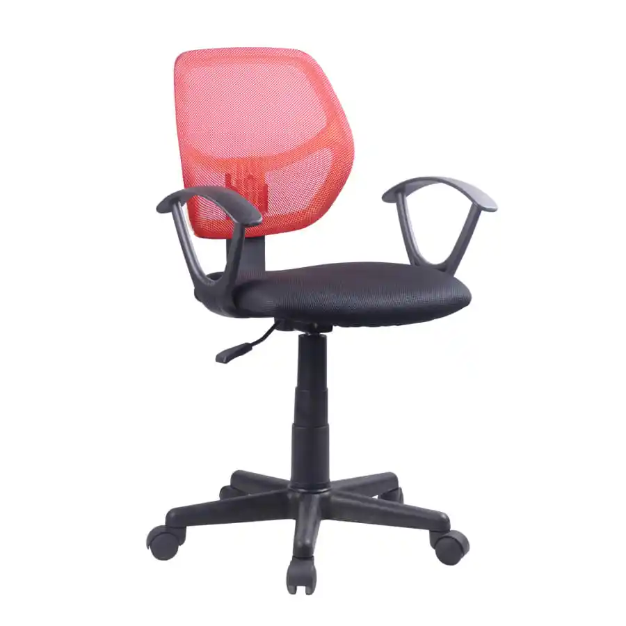 Seat and back made of mesh fabric. Frame and wheels made of plastic, adjustment handle under the seat, which can be used to adjust the seat height, 44-54cm.