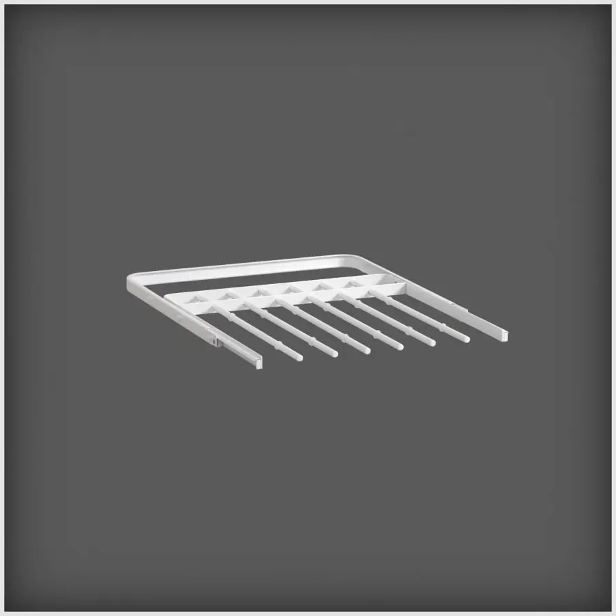 Med Elfas utdragbara byxhängare kan du organisera dina byxor och kjolar. En byxhängare har plats för sex kläder. Bredd 449 mm, djup 430 mm. Materialet är flammålat stål.