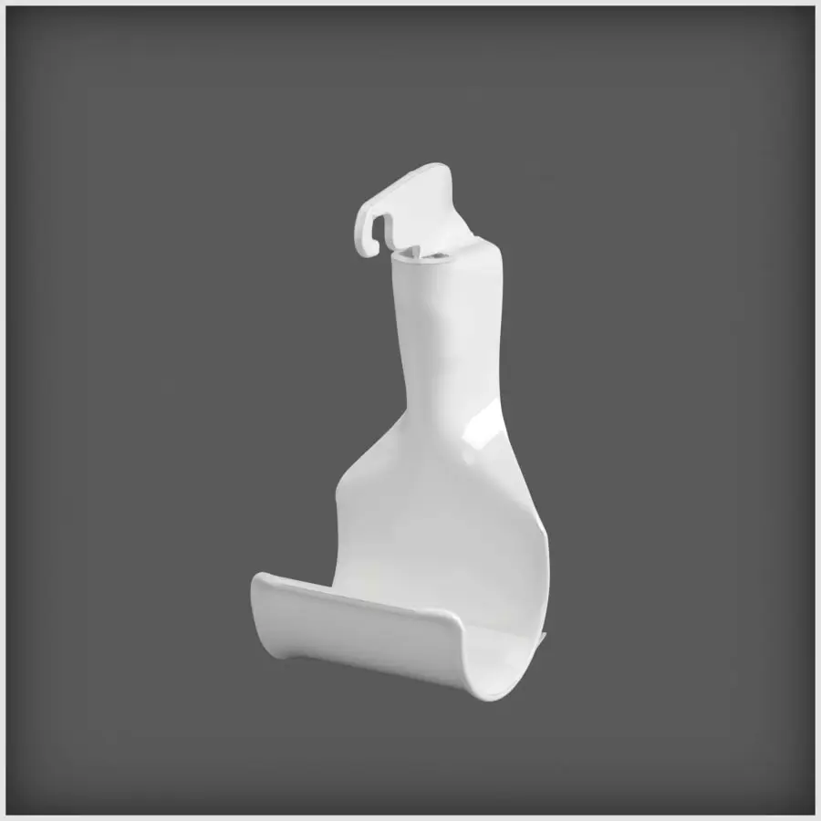 Du kan enkelt fästa en klädspö på Elfa spöhållaren. Spöhållaren fästs enkelt i hålet i botten av Elfa-fästet utan verktyg. Materialet är flammålat stål.