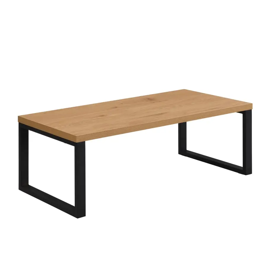 Black metal legs, oak-colored coated MDF cover. Cover thickness 3.5 cm.