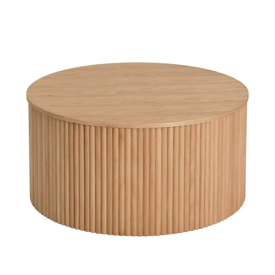 Ett färdigmonterat ljus ekfärgat soffbord.