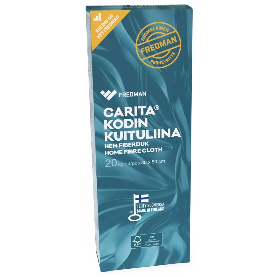 The Fredman Kodin fiber cloth cleans even the most difficult dirt. The cloth’s high absorbency and lint-free surface make cleaning efficient and easy. Applications include: all demanding mirror and glass surfaces, home, bathroom and kitchen surfaces, table tops, basins, mirrors, windows, toilets and saunas. Also try it for cleaning glasses and sunglasses. When you use a new, clean fiber cloth every day, you avoid the spread of impurities. Moisten the Fredman Kodin fiber cloth with water before use. To enhance the cleaning result, you can also use a mild cleaning agent. The Fredman Kodin fiber cloth effectively absorbs dirt, grease and impurities from all surfaces. The fiber cloth is for daily use and it is also suitable for long-term use. Rinse and air-dry the cloth after each use. You can put the Fredman Kodin fiber cloth in the energy waste after use.