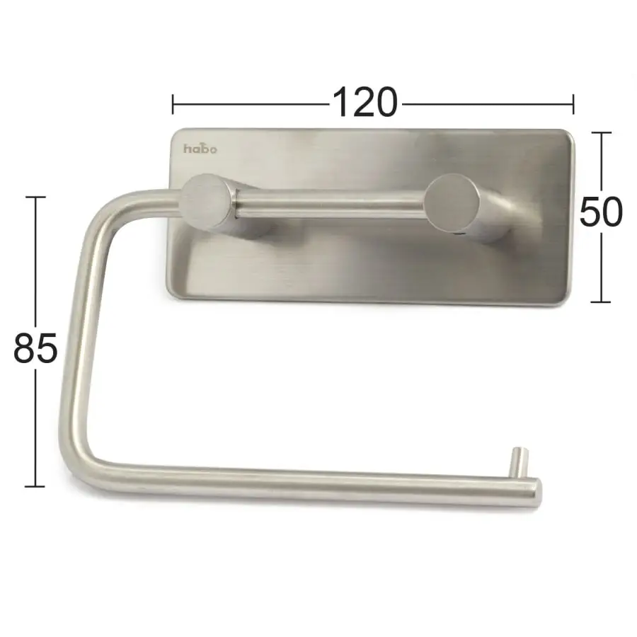Toilet paper holder made of stainless steel with Velcro fastening.