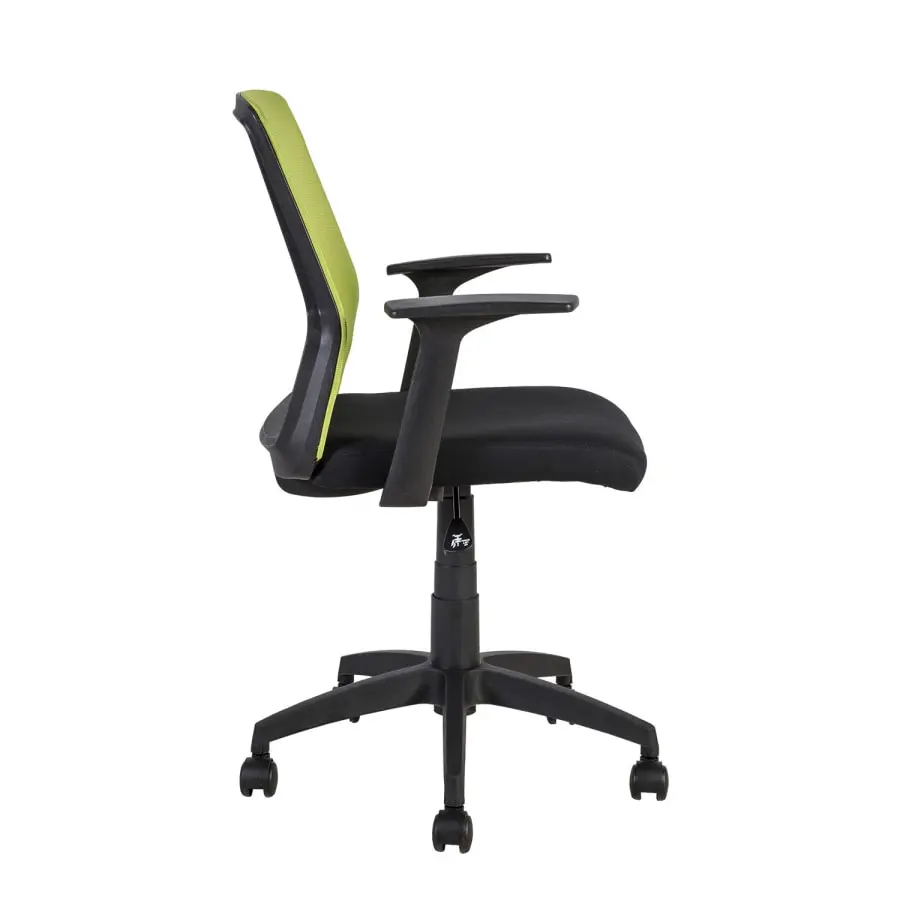 Adjustable office chair Alpha. Seat height adjustable with gas spring 87.5-95cm. Body and armrests in black plastic. Upholstery in polyester fabric. Plastic wheels, pin 11mm.