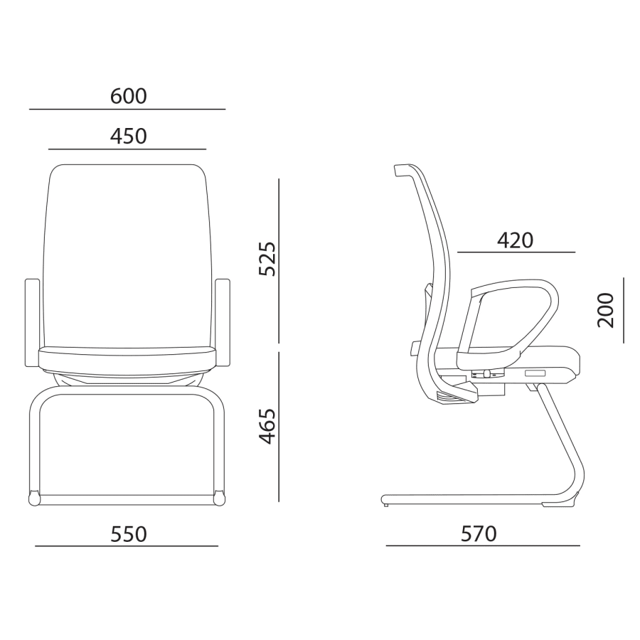 Kontorsstol/Kundstol Anggun gulgrå. Svarta metallramar med plastarmstöd. Sits klädd med polyestertyg. Justerbart svankstöd.