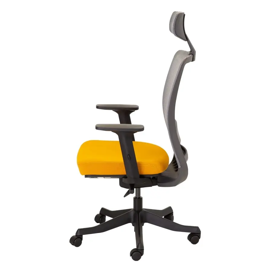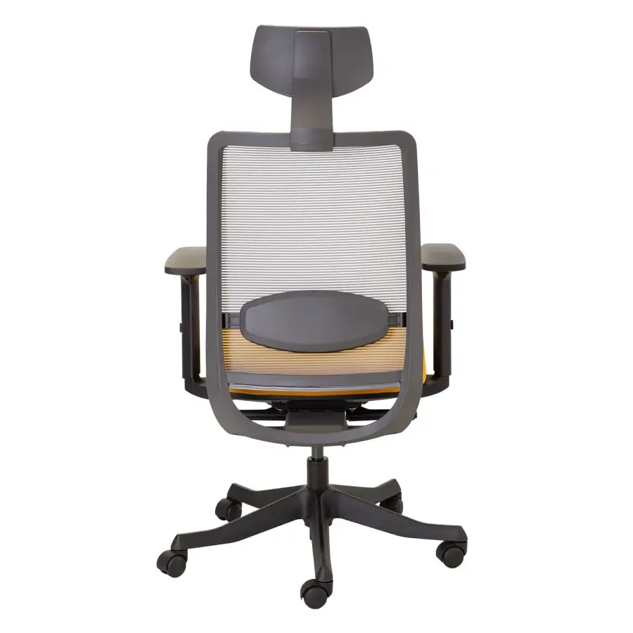 Justerbar kontorsstol med Anggu 5-stifts plastfot. Sits klädd med polyestertyg, 50 000 Martindale samt rygg- och nackstöd klädda med polyesternättyg, vilket säkerställer god luftrörelse. Den viktkänsliga synkrona mekanismen justerar automatiskt gungans styvhet efter vikten på sittaren. Justerbart svankstöd. Sitsens djup och höjd kan justeras med en gasfjäder. Svarta plastarmstöd med justerbar höjd, djup och vridvinkel. Höjden på nackstödet är justerbart.