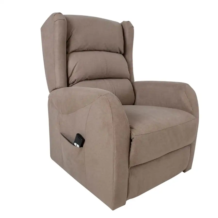 En bra presentidé till morföräldrar! Mekanism stol Barny, positionen på ryggstödet och fotstödet kan ändras med en fjärrstyrd elektrisk mekanism. När fotstödet höjs förflyttas ryggstödet mjukt till viloläget. Fåtöljen är utrustad med en lyftmekanism som trycker upp hela stolen från sin bas och hjälper användaren att komma i stående eller sittande läge utan att belasta höfter, rygg eller armar. Klädd med polyuretanskum och 100% polyestertyg. Ram och upphängning av trä, plywood och metall.