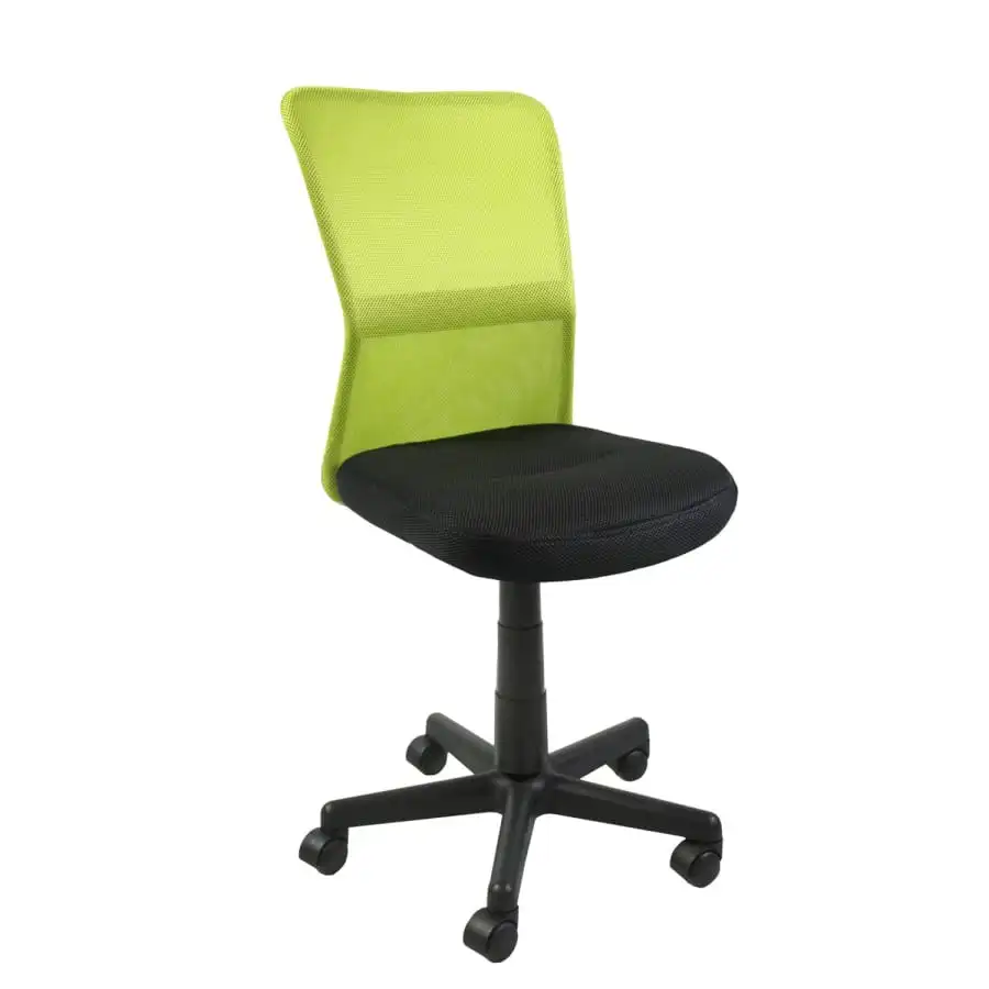 Office chair Belice with height adjustment mechanism. Leg frame made of plastic, seat upholstered with black polyester fabric and backrest made of polyester mesh fabric. The seat height can be adjusted with a gas pump mechanism between 40-52cm.
