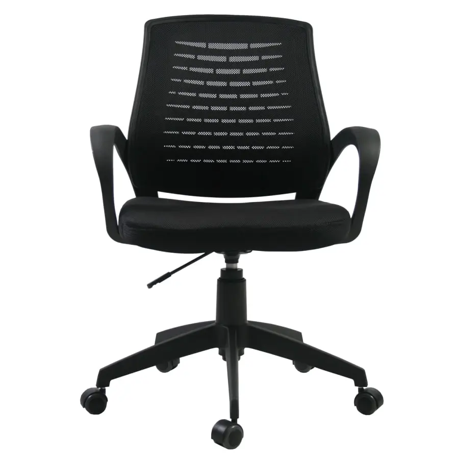 Office chair Brescia with adjustable seat height. Plastic footrest and armrests. Polyester fabric seat, 30,000 Martindale. Backrest made of polyester mesh fabric. Seat height adjustable with gas spring.