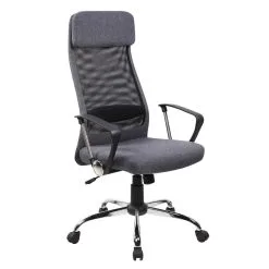 Adjustable office chair Darla. Rocking mechanism, seat height adjustable with gas spring. Foot grid chromed metal. Armrests chromed metal and black plastic. Seat and backrest made of polyester fabric and polyester mesh fabric.