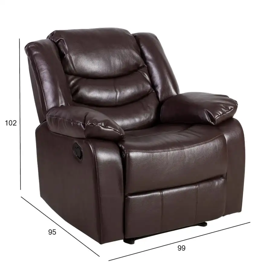 Adjustable Armchair Dixon with artificial leather upholstery. Adjustable backrest and footrest. Body plywood and suspension six-sax and pocket suspension. Padded with polyurethane foam and upholstered with artificial leather.