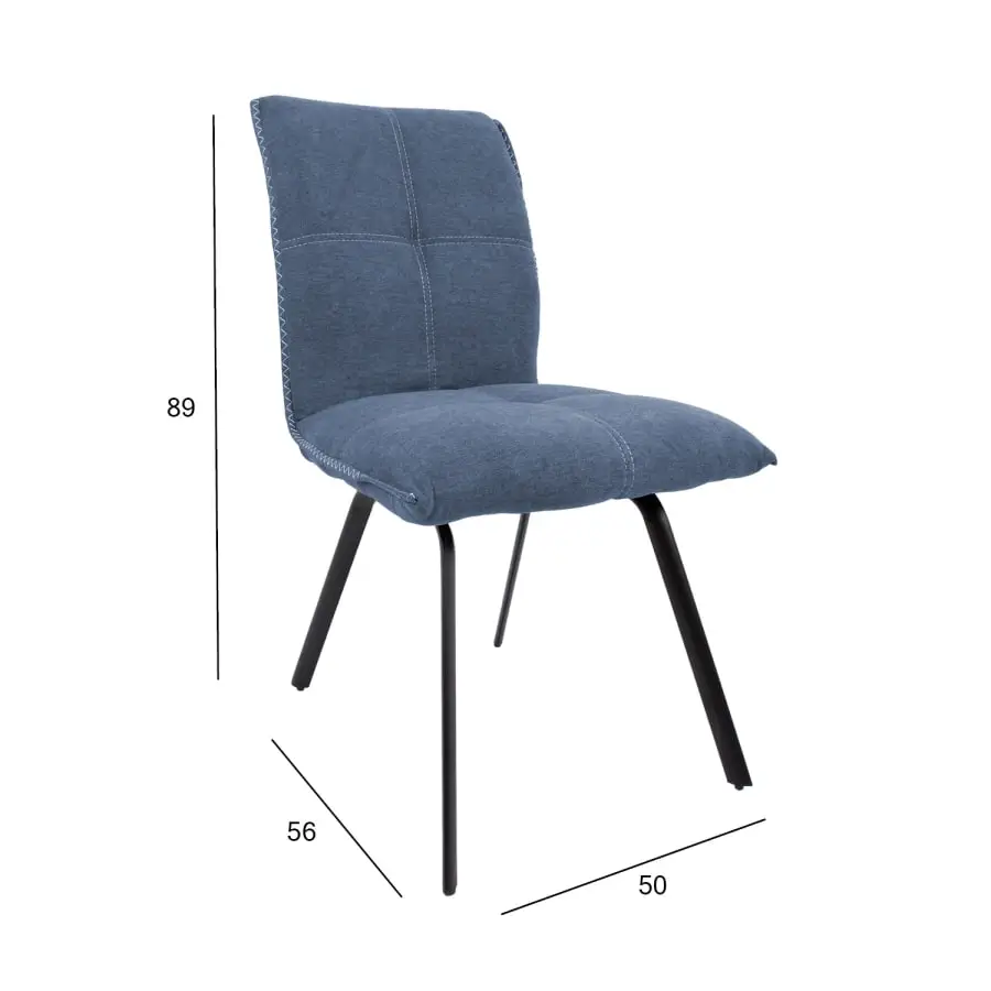 Chair EDDY 50x56xH89cm. The convenient and stylish dining chair is covered with gray polyester fabric. The seat of the chair is upholstered. The black matte metal legs are powder coated. Seat height 48cm, seat width 47cm, seat depth 45cm. Backrest height 47cm. Weight limit 120kg.