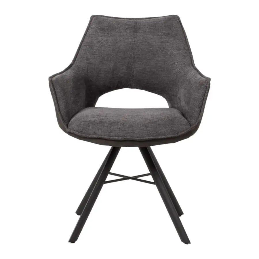 Dining chair Eddy. Black powder-coated metal legs and fabric-upholstered seat. The seat rotates 180° degrees.