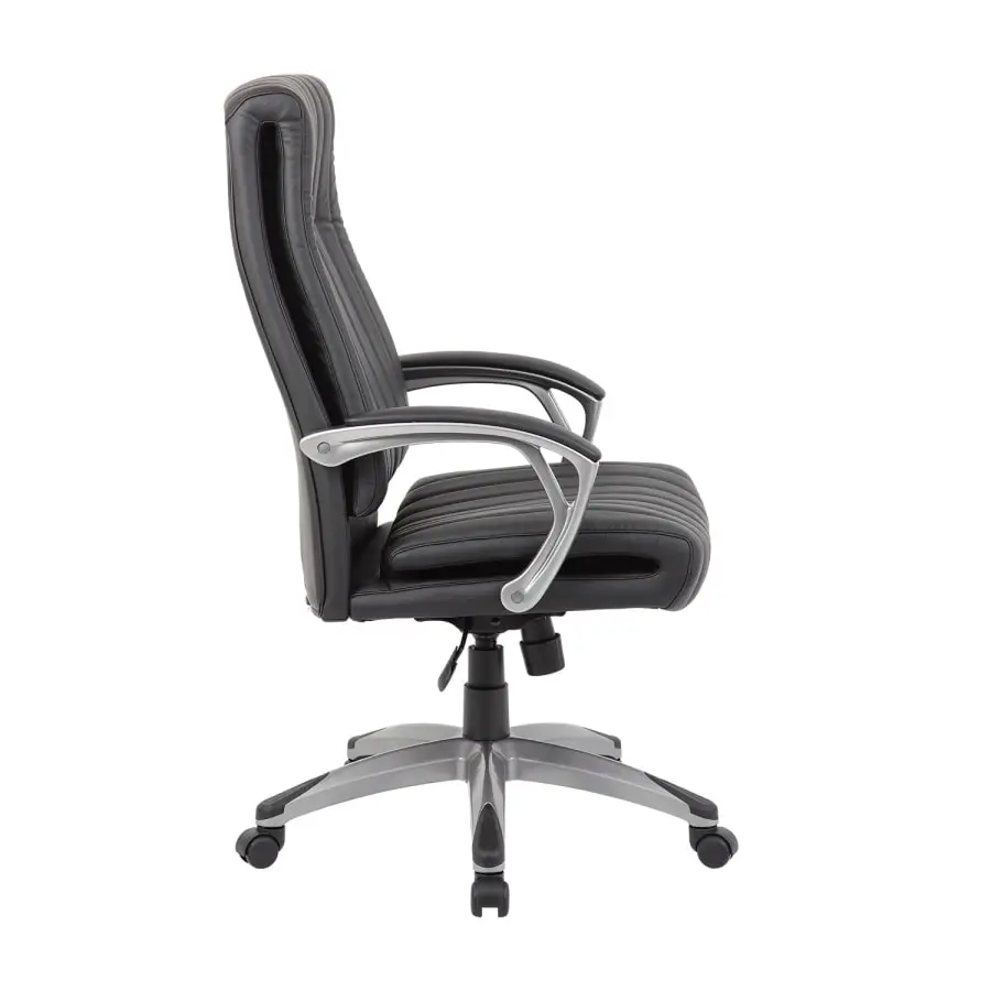 Kontorsstol med elegant konstläderklädsel. Synkron mekanism, styvheten på gungan kan justeras baserat på vikten på sitter. Sitshöjd justerbar med gasfjäder. Fotstöd och armstöd i plast. Sits och ryggstöd i konstläder.