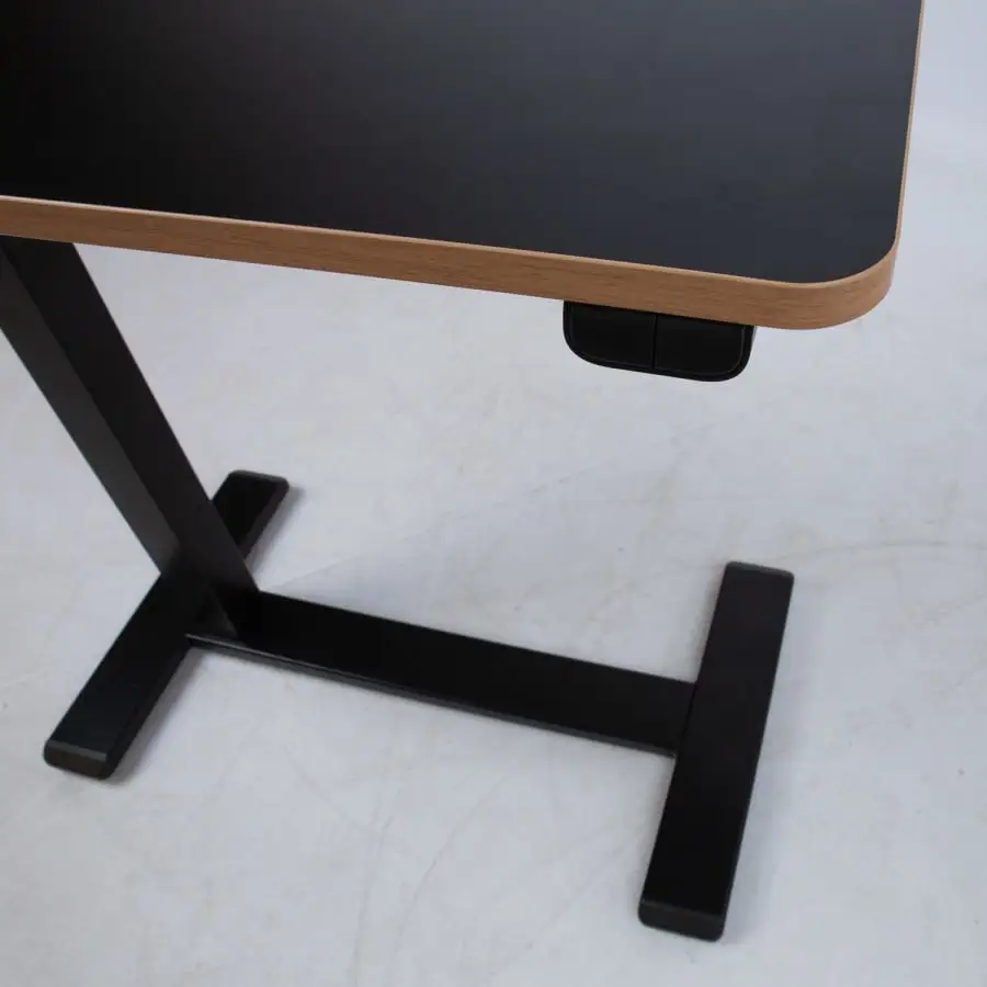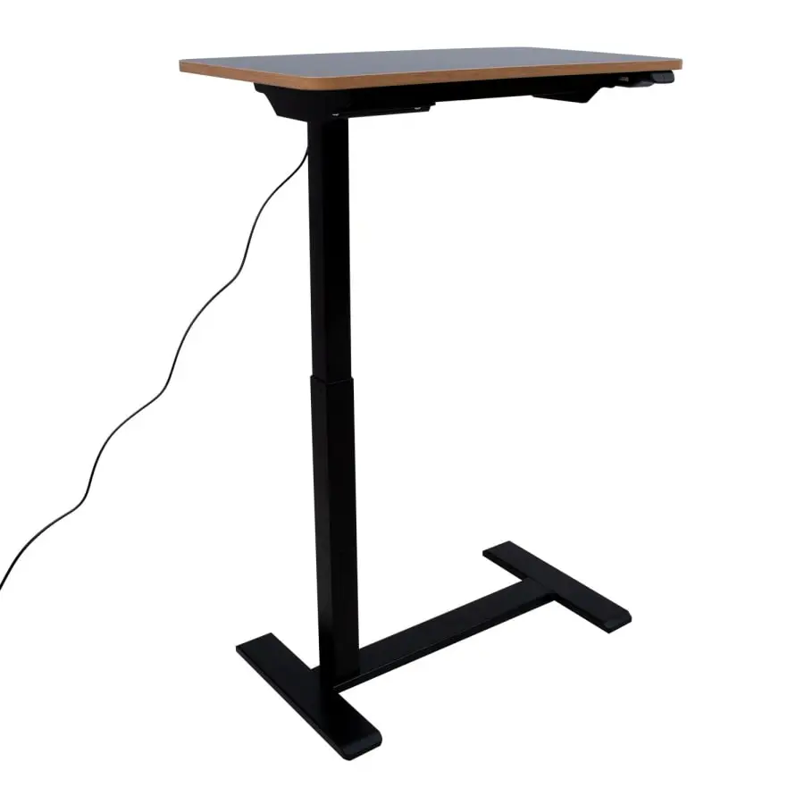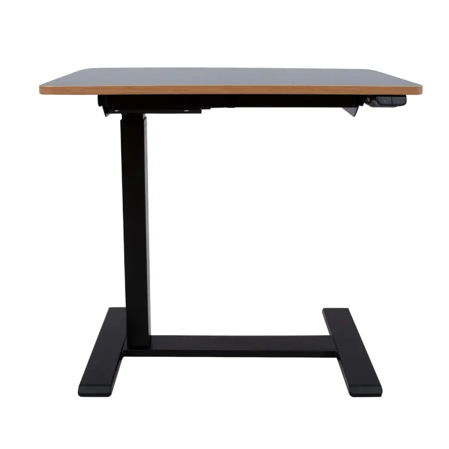 The mobile and compact, electrically adjustable desk ERGO is ideal for home or office. Thanks to the hidden wheels, the desk is easy to move and the C-leg enables the table to be positioned so that it is comfortable to use even when sitting on a bed or sofa. One electric motor and a two-stage lifting system guarantee fast, smooth and quiet (<50dB) movement. Maximum lifting speed 30 mm per second. The height of the table can be adjusted between 65-103cm. Simple control panel with two buttons. Input voltage: 100V-240V. 70x40cm dark brown melamine table top. Designed for maximum structural integrity, the frame features a double steel tube to ensure stability even at the highest heights. The metal parts are painted with black powder paint.