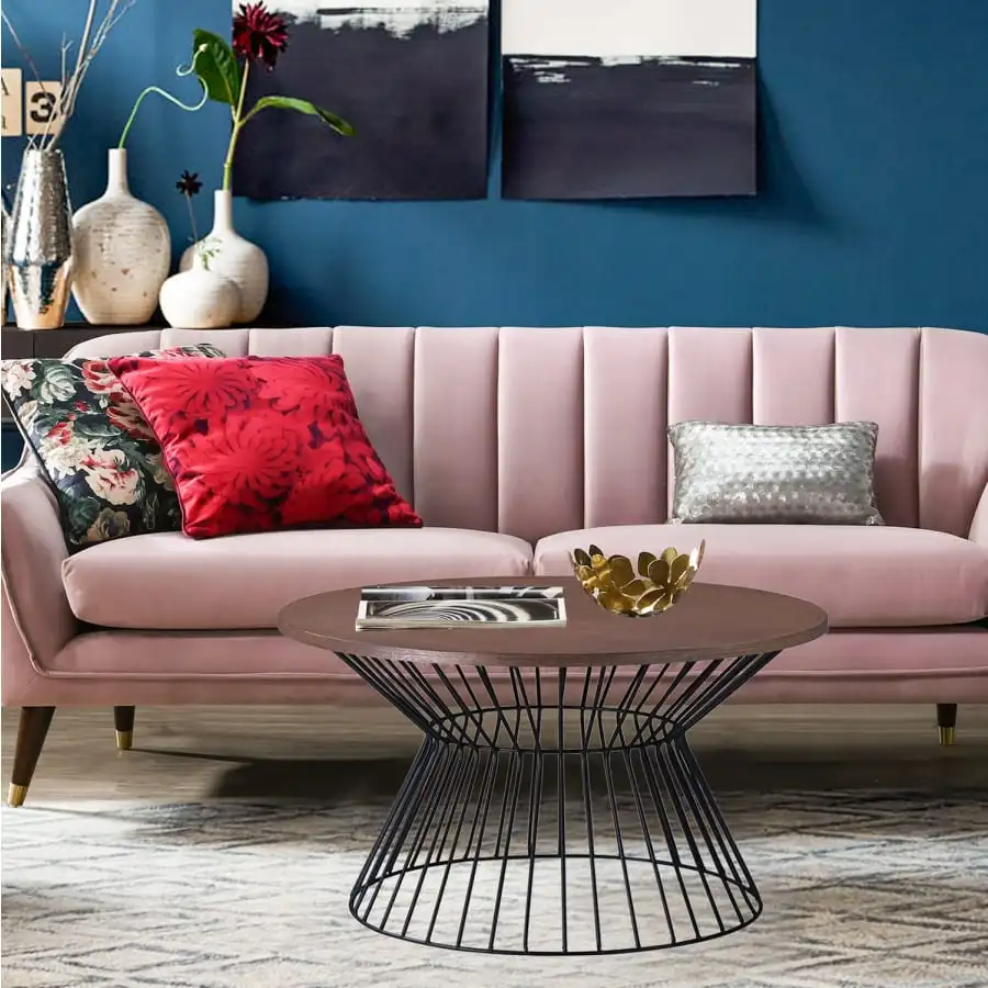 Stylish coffee table Fabiona. Beautifully designed metal frame, MDF table top finished with natural walnut veneer. The cover of the coffee table is finished with glossy varnish.