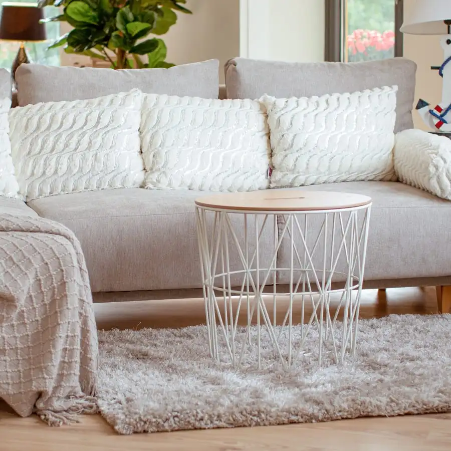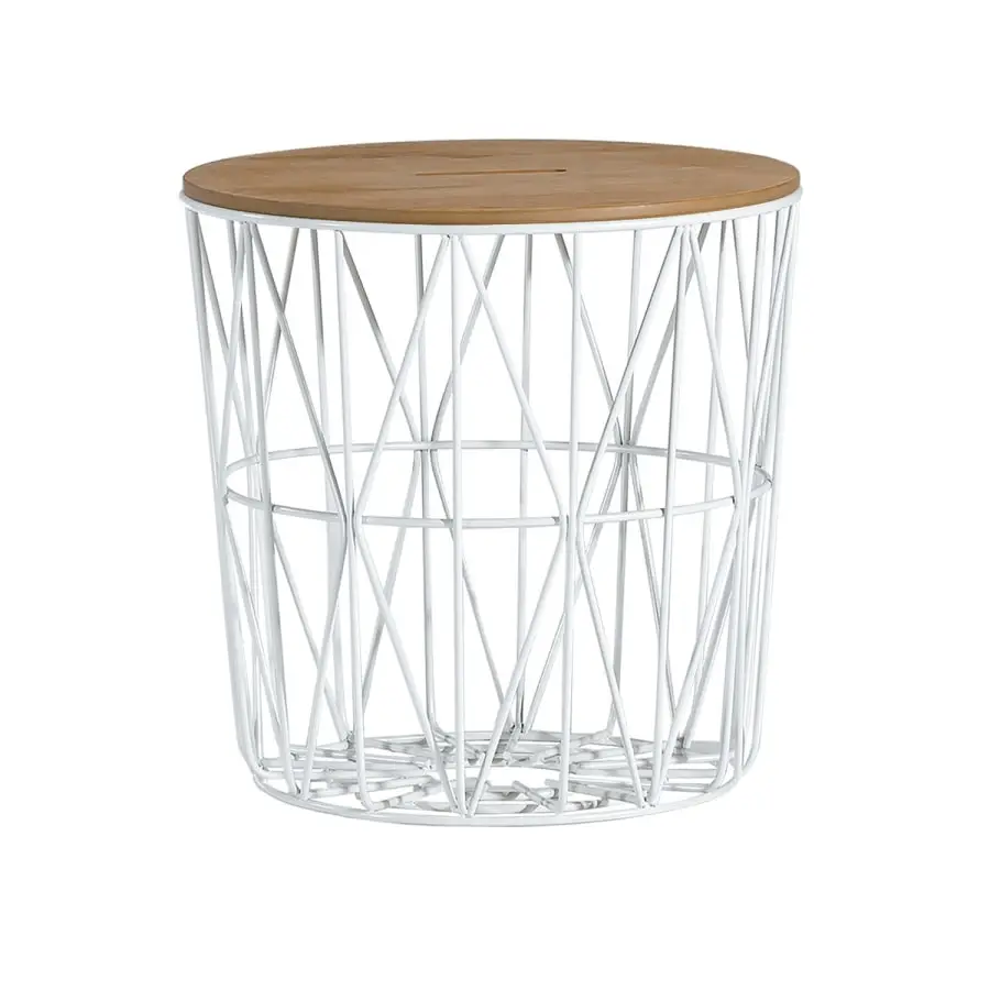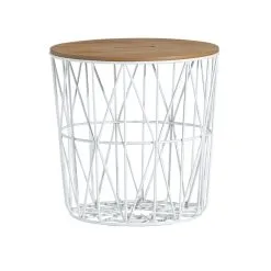 Coffee table Helena frame. The table top is made of oak veneered MDF board, finished with clear varnish. White metal frame.