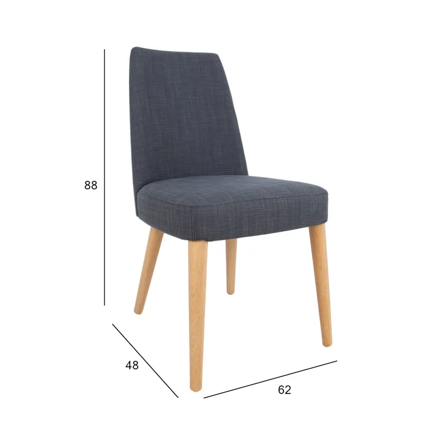 Chair ILVA 62x48xH88cm, dark gray upholstered seat, light oak legs.