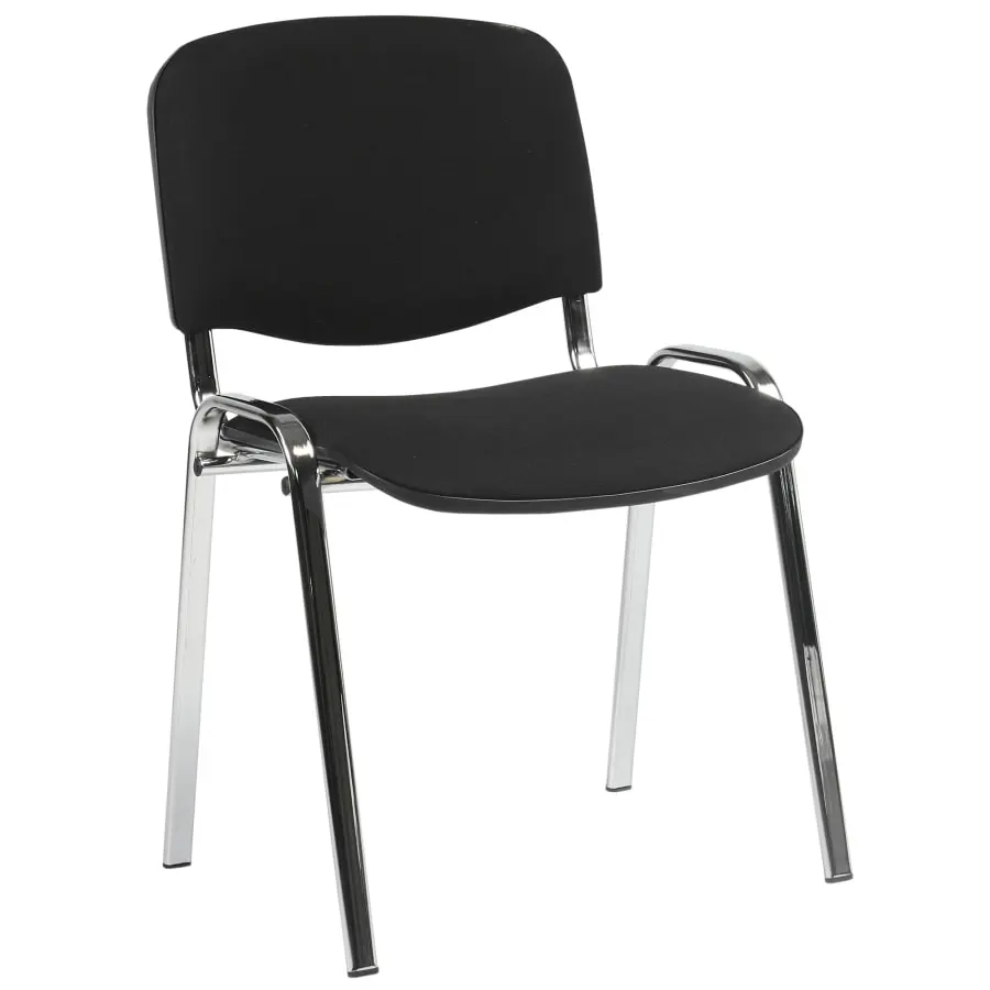 Office/customer chair Large. Body chromed metal. Seat and back in polyester fabric, 30,000 Martindale. The chairs are stackable.
