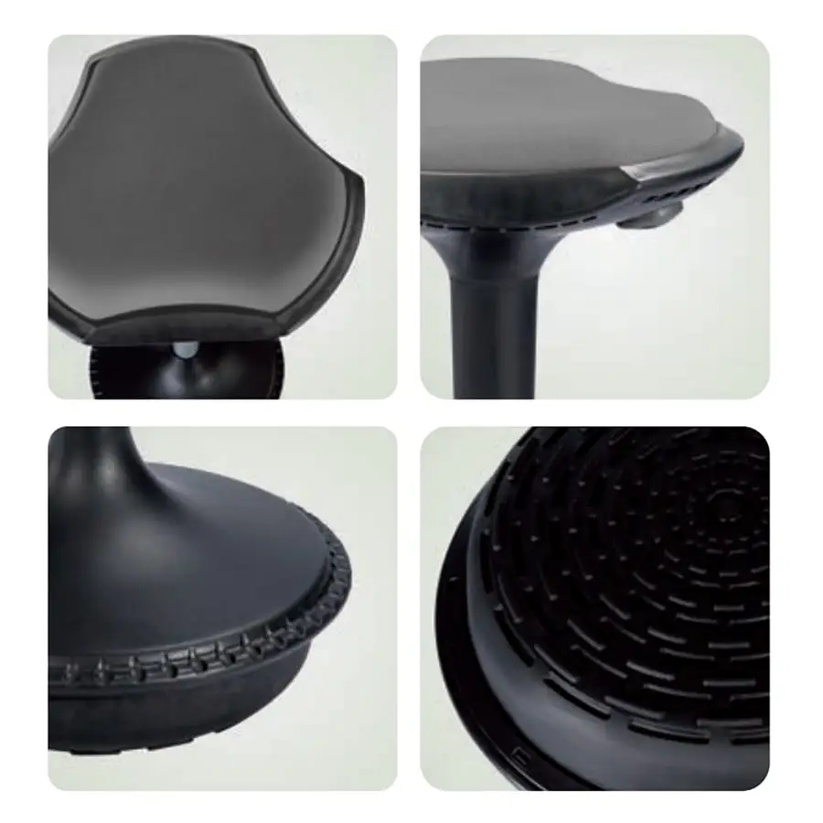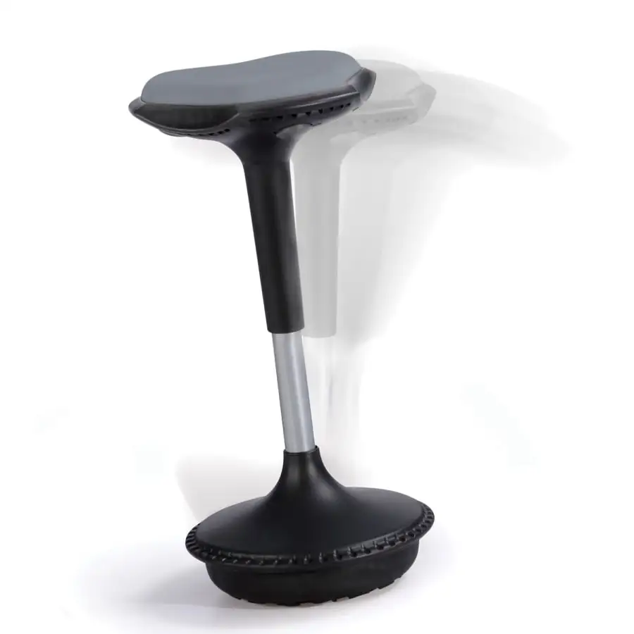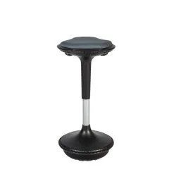 Work stool Just Fun. Ergonomic office chair. Thanks to the round seat, it is easy to sit in the chair and after use it returns to its initial position by itself – Self balancing. The shaped rubber base of the base guarantees a good grip and the chair does not slip out from under the seat. The seat height can be adjusted with a gas spring from 59.5 to 84 cm. The seat is upholstered with gray fabric. Steel frame.