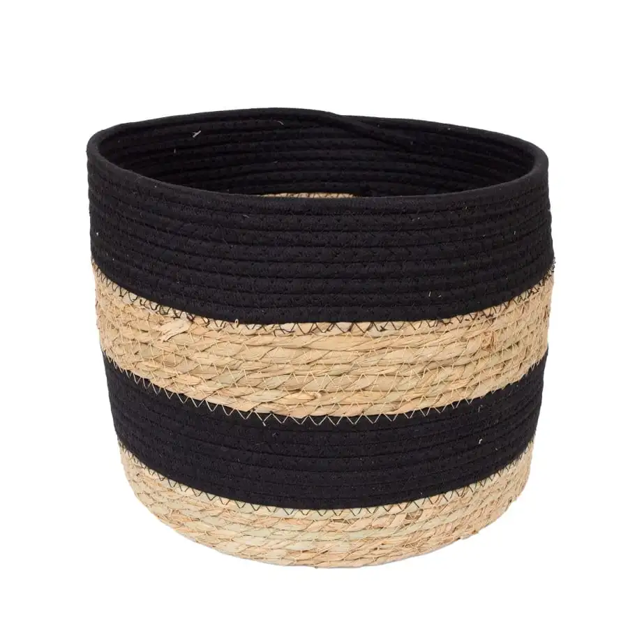 Basket KENIA-1, H34xH24cm, natural/black. Basket material: natural colored sea reed and black cotton rope.