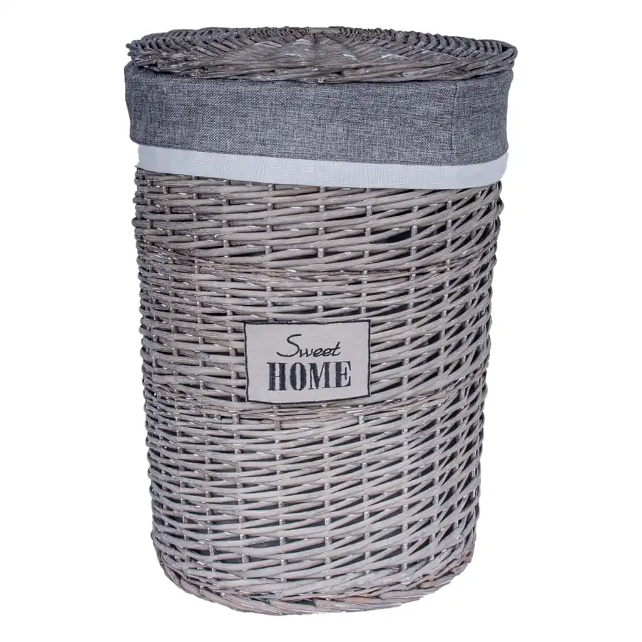 Laundry basket MAX D40xH56cm, woven, color: antique gray, with fabric. Basket material: dyed split willow, fabric: smooth fabric.