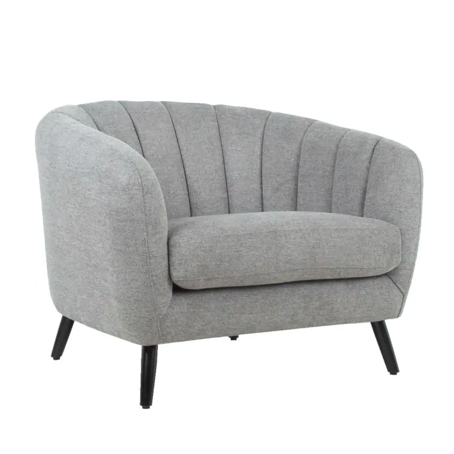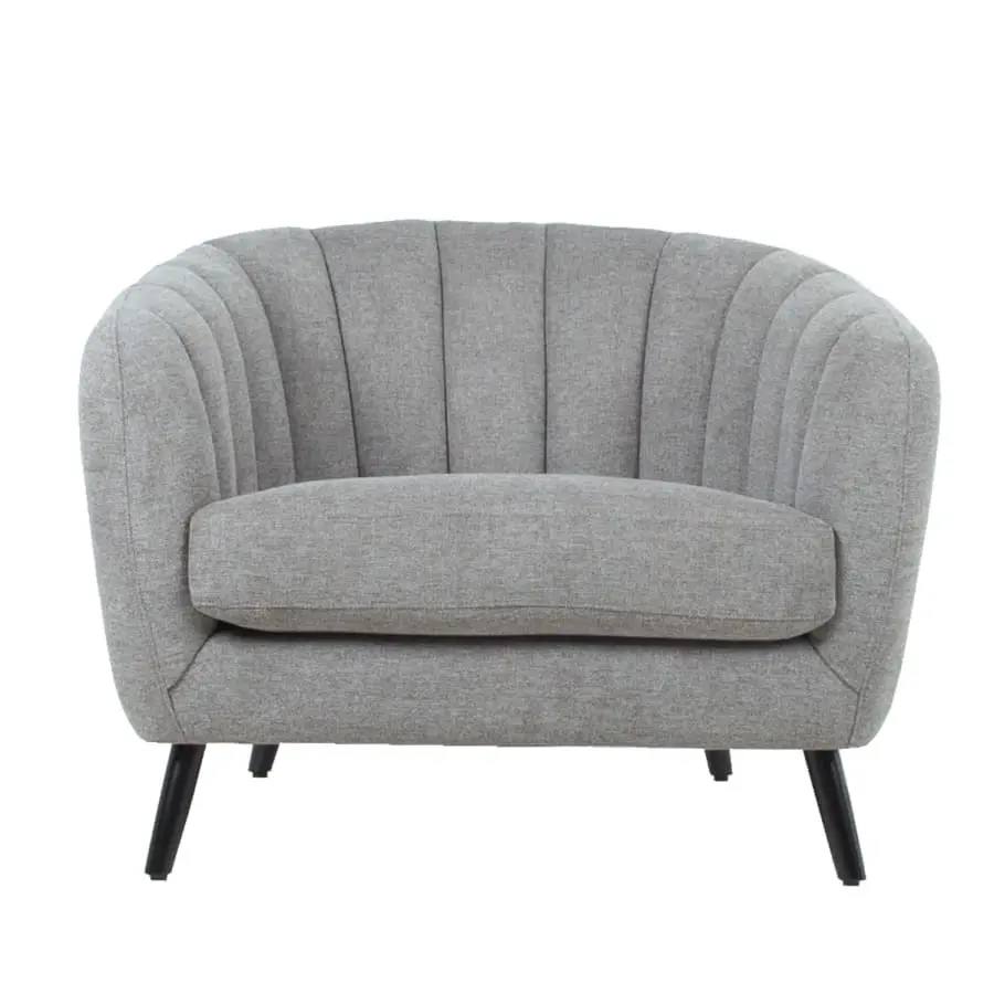 Fåtölj Melody med vackra fräscha färgalternativ! Den vackert designade plyschfåtöljen är ett blickfång! Träram, med ram av plywood. Fickupphängning. Vaddering polyuretanskum och klädsel 100% polyester. Träben.
