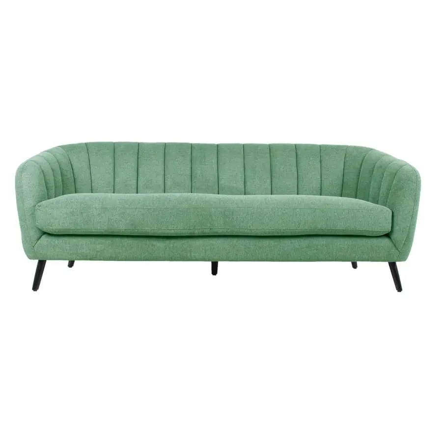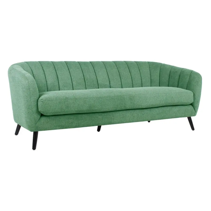 Sofa Melody with beautiful fresh color options! A beautifully designed plush sofa is an eye-catcher! Wooden frame, with plywood frame. Pocket suspension. Padding polyurethane foam and upholstery 100% polyester. Wooden legs.