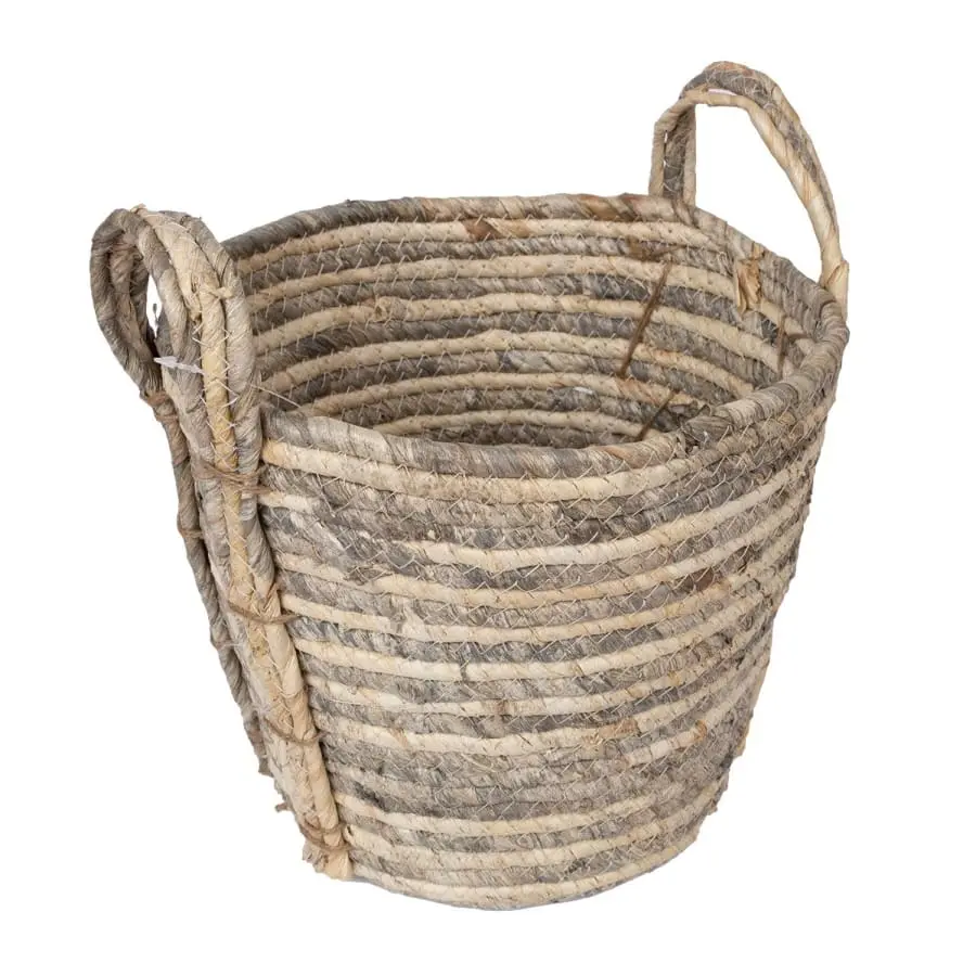 Basket MIAMI-2, D26xH24cm, gray stripes. Basket with handles. Basket material: corn.