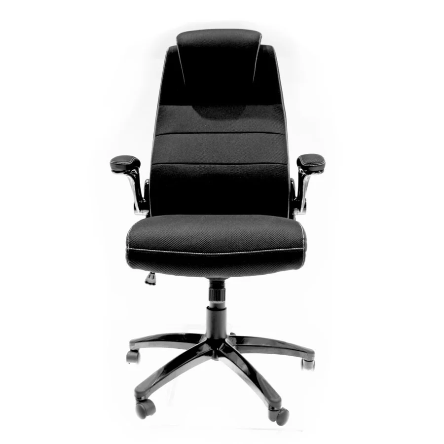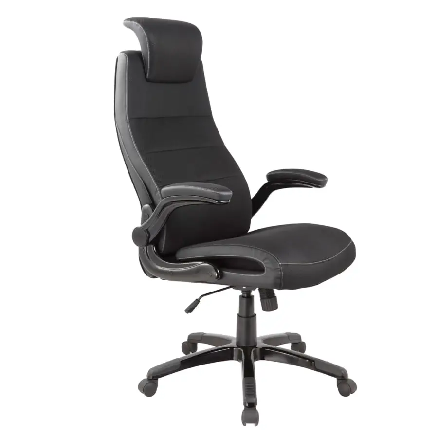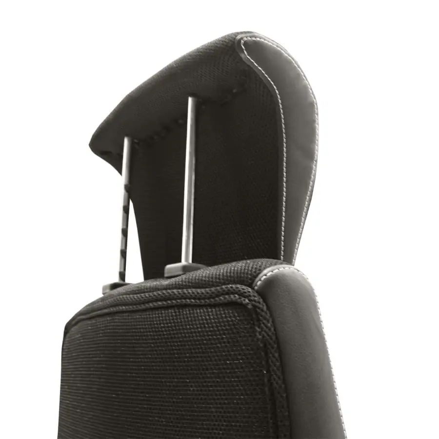 Adjustable office chair Pistoia. Synchronous mechanism, backrest curvature adjustable, seat height adjustable with gas spring. Armrests made of plastic and padded with synthetic leather, adjustable. The height of the headrest is adjustable. Seat and backrest in artificial leather and polyester mesh fabric. Leg grid made of plastic.