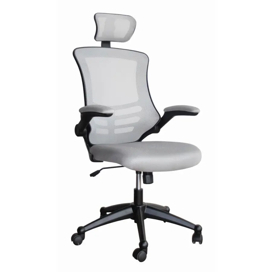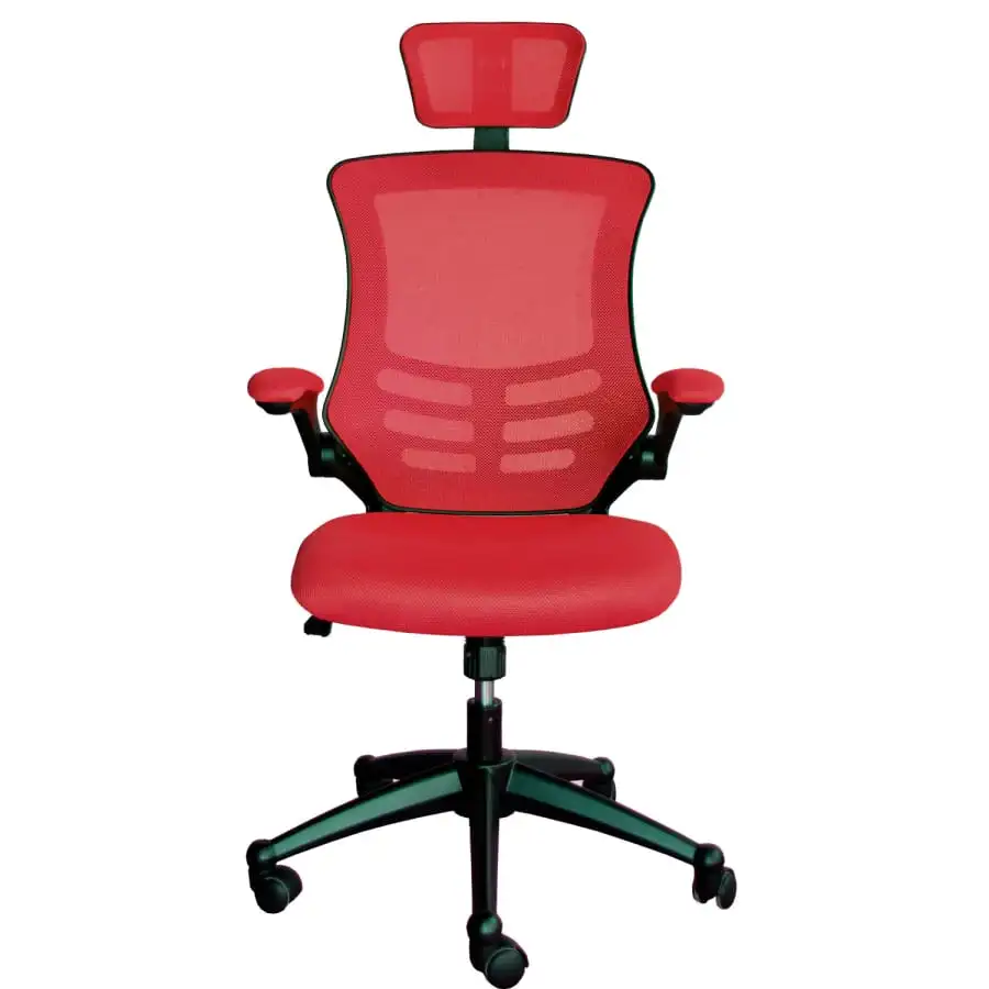 Office chair Ragusa, with several color options. Rocking mechanism, seat height adjustable with gas spring. Armrests made of plastic and padded with polyester mesh fabric, possibility to raise. The height of the headrest is adjustable. Seat and back in breathable and durable polyester mesh fabric, 30,000 Martindale. Leg grid made of plastic.