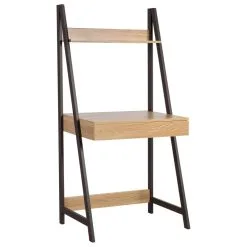 Stylish Step desk with a convenient upper shelf and drawer. The frame is made of steel and the compartment/writing part and the top shelf are made of melamine board. The box has metal rails, with two compartments.
