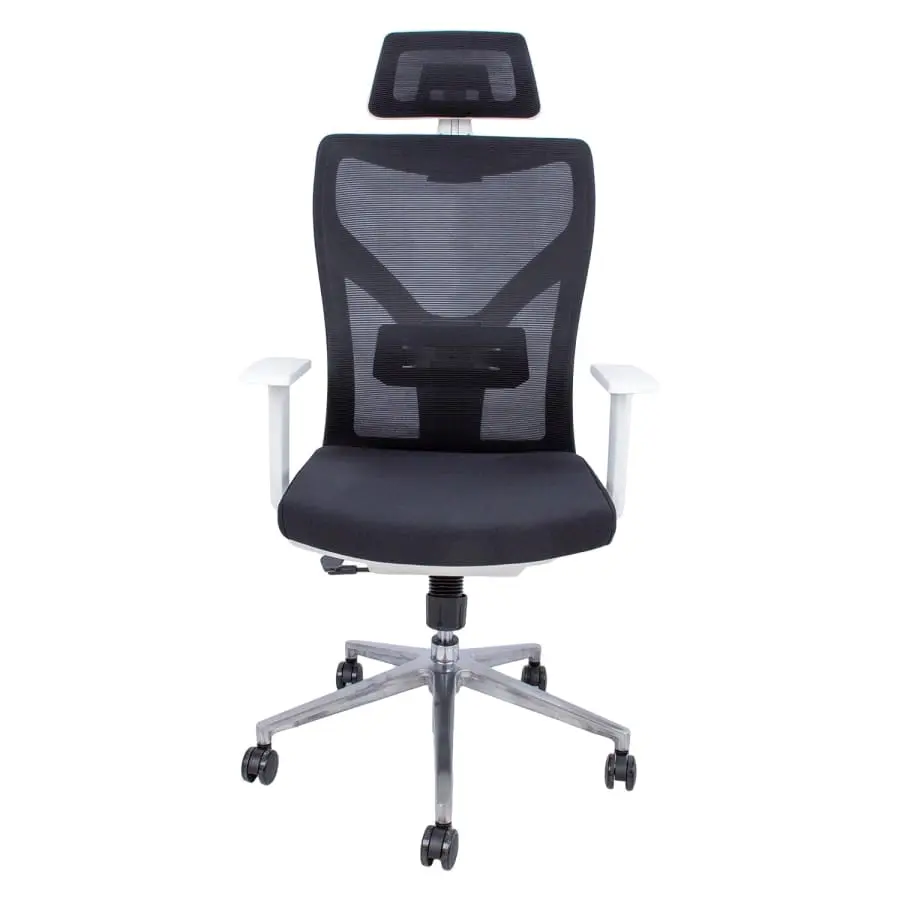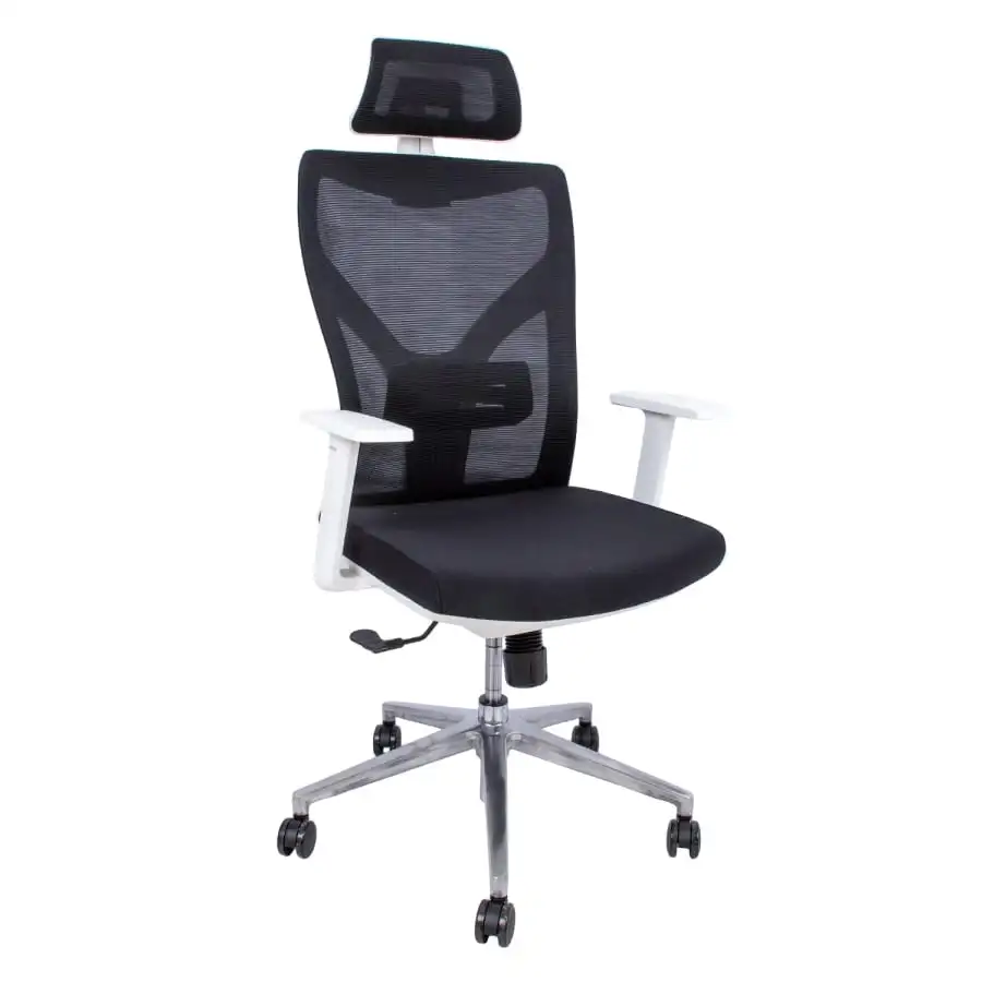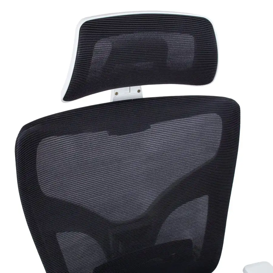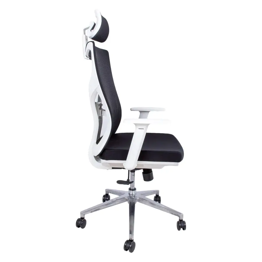 Istuin on päällystetty polyesterikankaalla, 50 000 Martindalea. Selkä- ja niskatuki on päällystetty polyesteriverkkokankaalla, 30 000 Martindalea. Tuolissa on kallistusmekanismi, lukittava yhteen asentoon. Säädettävä ristiseläntuki. Pneumaattinen istuimen korkeuden säätö. Runko ja selkänojan runko on valmistettu valkoisesta muovista. Käsinojat ovat kiinteät. Pääntuen korkeus ja kulma on säädettävissä. 5-piikkinen alumiinijalusta, R34cm. Nylon pyörät, 50mm. Korkeus 94-100,5cm, istuimen leveys 49cm, syvyys 48cm, istuinkorkeus 45-54cm.