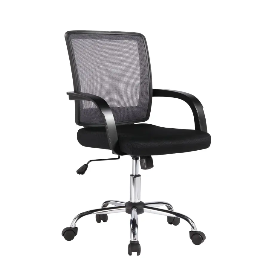 The office chair Visano is made of breathable material. Seat and backrest upholstered with breathable polyester mesh fabric. Swing mechanism, the stiffness of the swing can be adjusted based on the weight of the sitter. The height of the office chair seat can be adjusted with a gas spring. Black plastic armrests. Leg grid made of chromed steel. Round rubber wheels.